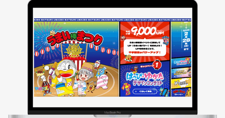 特設サイトでは、間違い探しやキャッチゲームといった「懐かしさ」を感じるミニゲームがブラウザで実装され、子供も楽しめる楽しいコンテンツを取り揃え、堅苦しくなりがちな周年キャンペーンを明るいものにしています。