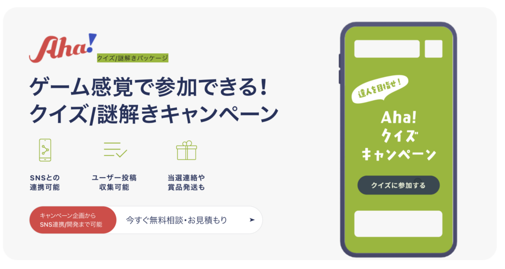 n2pでは、クイズ・検定をXやInstagram、LINEなどと絡めて実施できるサービス Aha!(アハ) を提供しています。