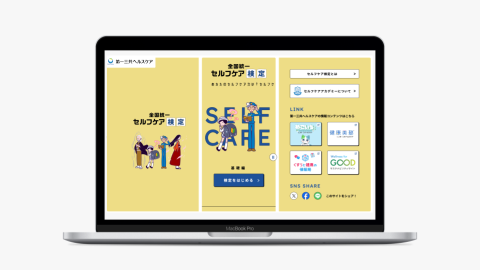 “セルフケア力”を楽しくチェックして、健康リテラシーを高めるオンライン検定コンテンツの事例です。