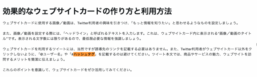 ウェブサイトカードを用いた予約投稿において、ハッシュタグ付きの投稿が配信されないケースを11月に確認しました。Xビジネスの該当ページでも、「@ユーザー名」や「#ハッシュタグ」を記載しないことが推奨されています。